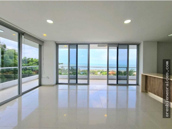 El apartamento se encuentra en excelente estado y cuenta con una amplia sala comedor, espectacular balcón con vista al mar, cocina abierta, cuarto baño de servicio, 3 habitaciones amplias con baño para mayor privacidad de la familia. El conjunto cuenta con piscinas de adultos y de niños, gimnasio dotado, cancha de squash, parqueadero de visitantes, zonas húmedas, vigilancia 24 horas.